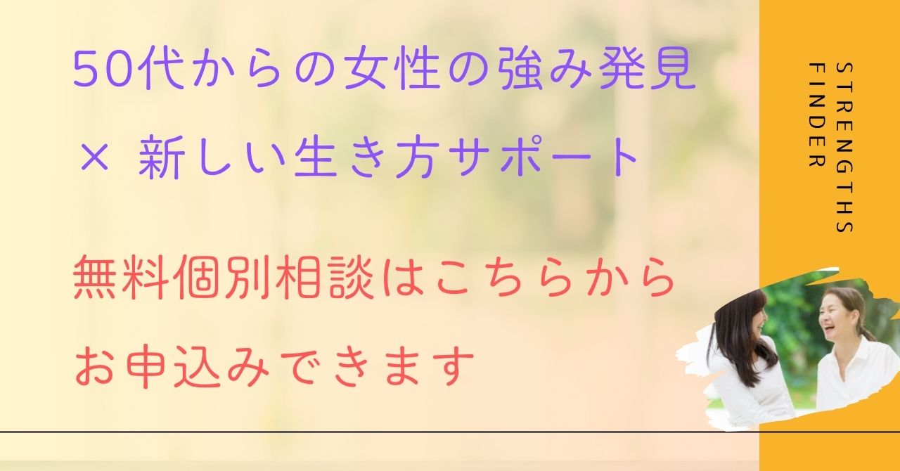 私のオススメする「50代からの女性の強み発見 × 新しい生き方サポート」では、ストレングス・ファインダーを活用し、自己理解を深めながら、「強み×生き方」をデザインするお手伝いをします。