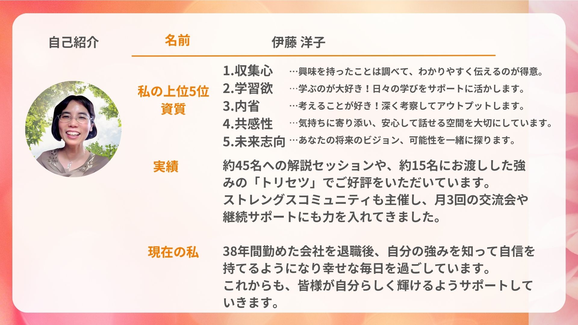 そういう思いから自分も、ストレングス・ファインダー解説セッションをやれるようになりたい。