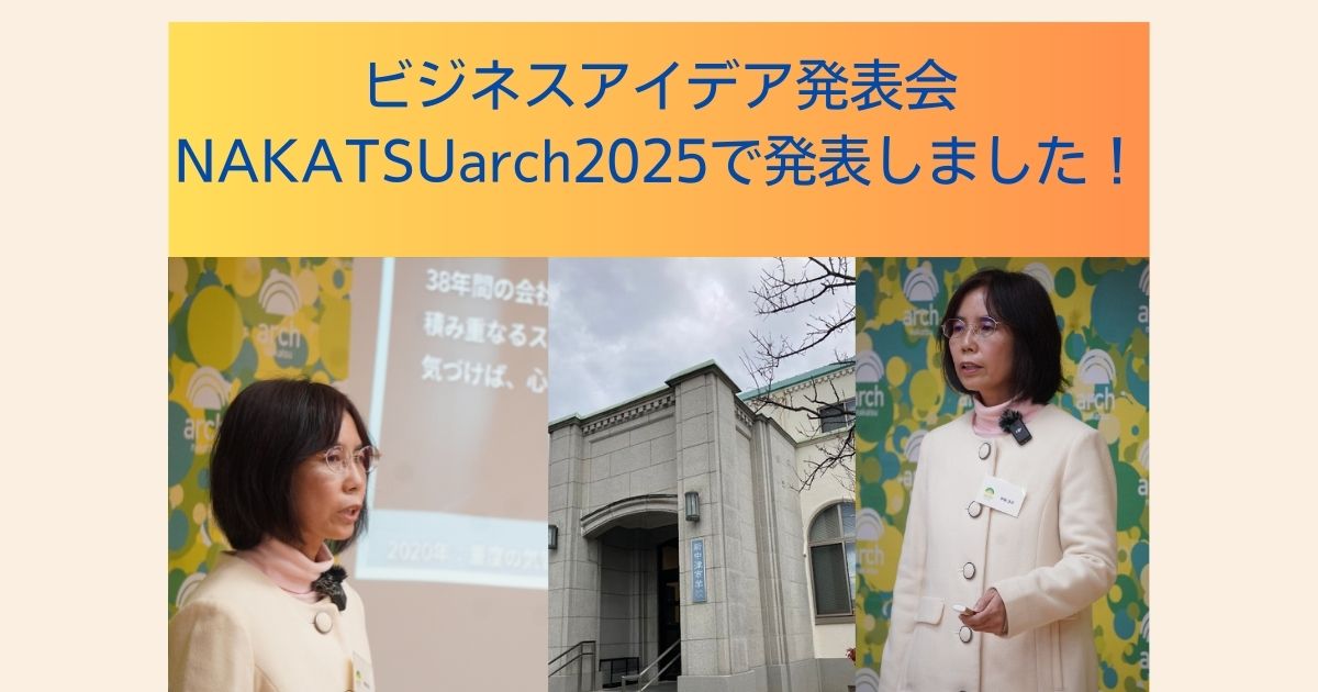 中津市が主催する女性起業家支援事業「NAKATSUarch(ナカツアーチ)」のビジネスアイデア発表会が開催され、私もプレゼンターの一人として参加させていただきました。