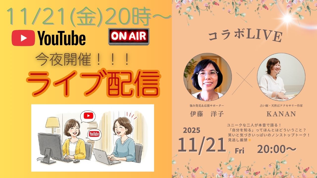 11/21(金)今夜20時、「自分を知る」本音トークライブを開催します。
